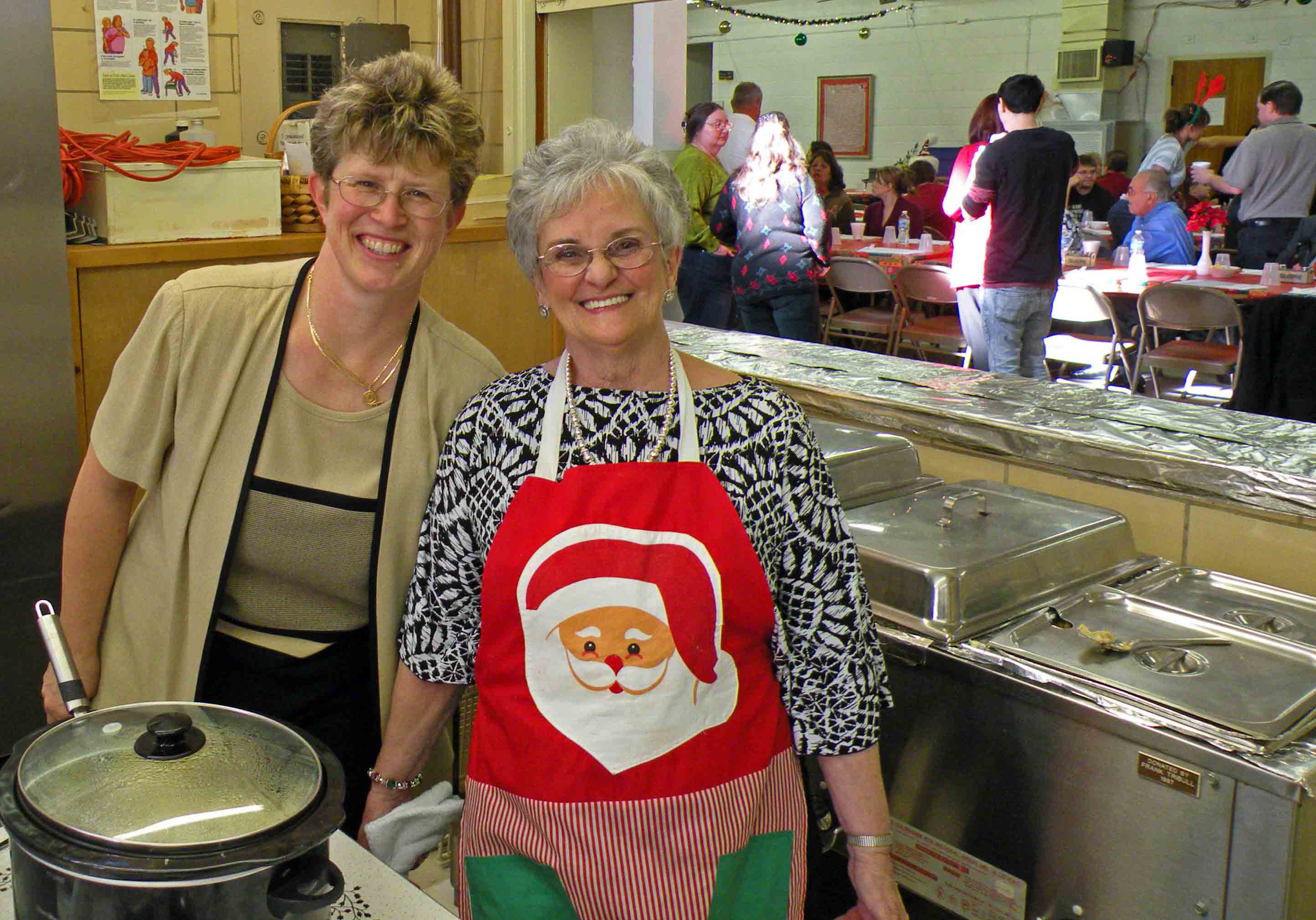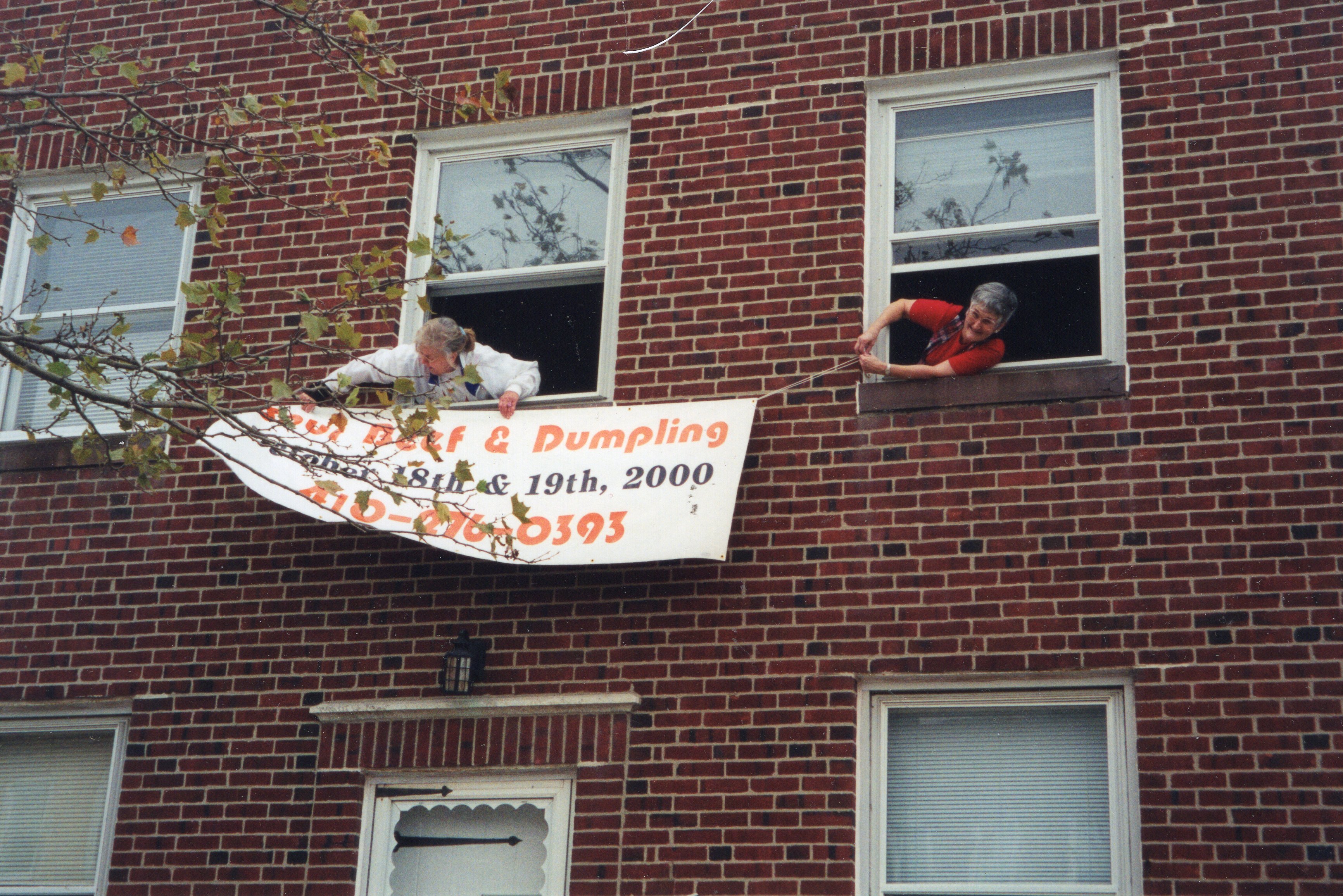 | 1005 | Sour Beef & Dumpling Supper - 2000 - Darlene and Cass hanging sign | https://uecarchives.org/photos/Picture 1005.jpg |